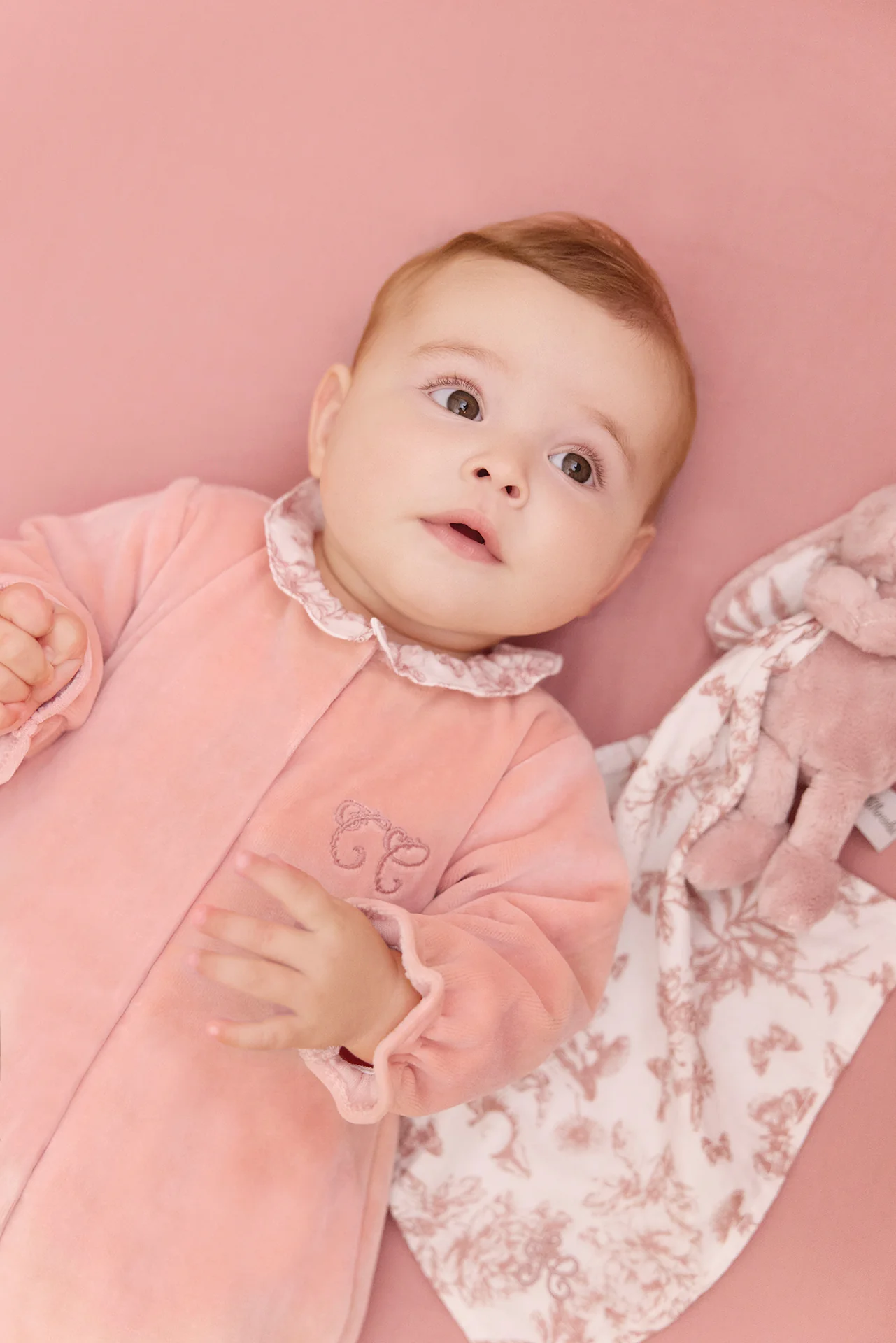 Rose en velours imprimé inspiration Toile de Jouy
